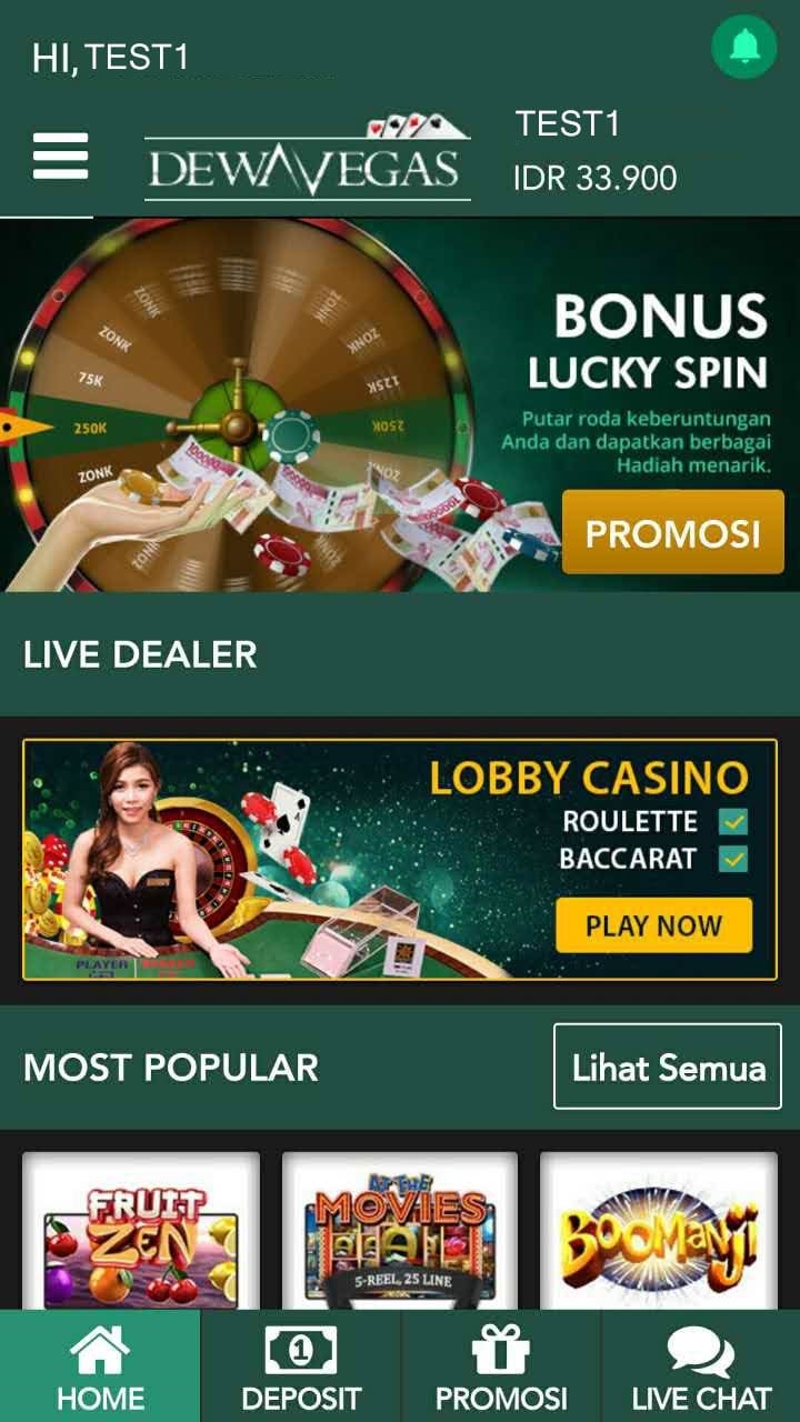 3. Setelah anda login, anda akan menuju tampilan lobby game. Disini anda bisa memilih jenis permainan dan juga bisa memilih tempat permainan.